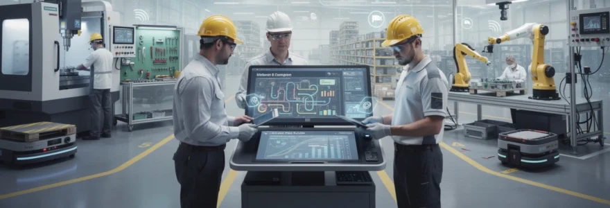 Les gains obtenus par le lean et l’automatisation peuvent être démultipliés lorsque vous y ajoutez une couche de digitalisation cohérente. L’Industrie 4.0 ne se résume pas à collectionner des capteurs et des tableaux de bord : il s’agit de mettre la donnée au service de la décision opérationnelle, en temps réel. En connectant vos machines, vos postes de travail et vos systèmes d’information, vous transformez vos étapes de fabrication en un processus pilotable, mesurable et optimisable en continu.